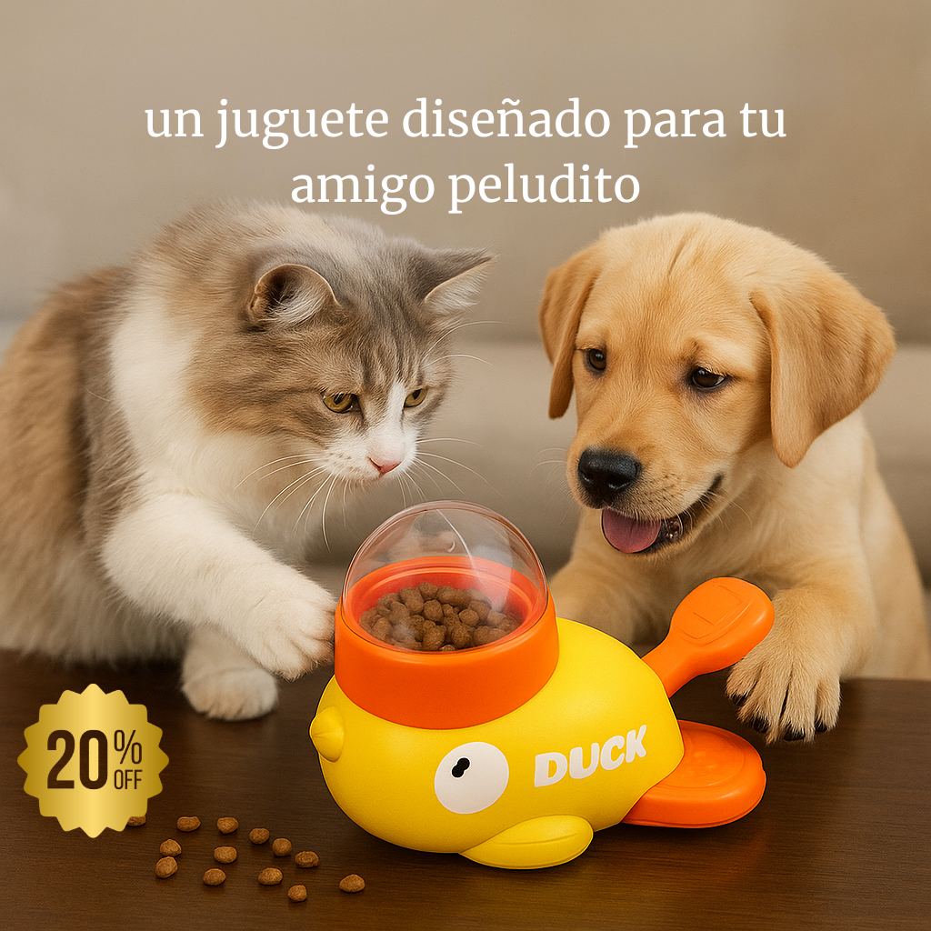 ¿Tu peludo se aburre fácilmente o come muy rápido? 😅 Con el juguete dispensador de premios en forma de pato 🦆, eso se acabó. Solo tiene que presionar con su patita o hocico para que salgan los snacks 😋 ¡y la diversión comienza al instante! 🎉