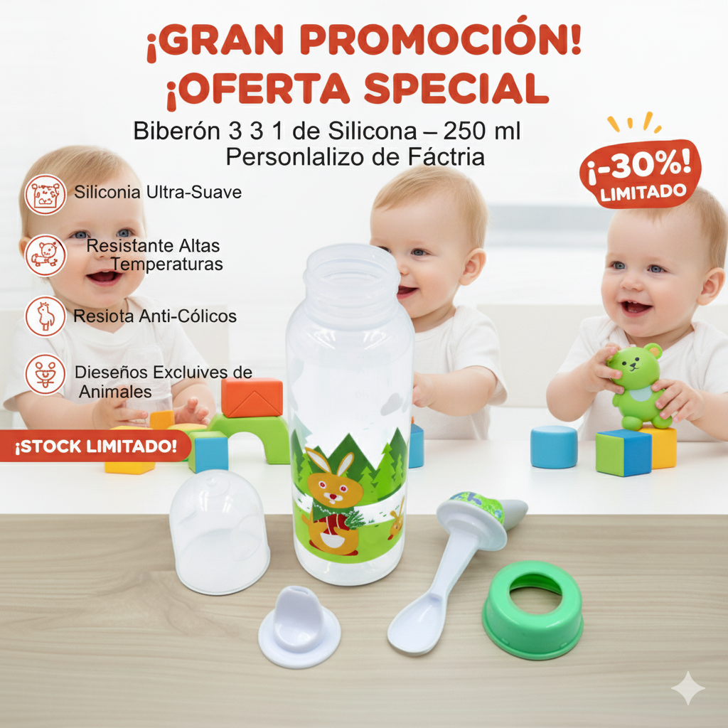 👉 Con este biberón multifuncional 3 en 1 podrás dar líquidos, papillas o juguitos sin complicaciones.